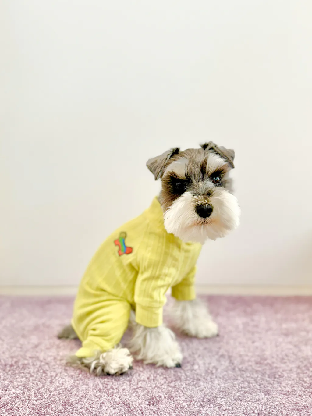マルプー4kgです。サイズ感はジャストフィット、布の質感、縫製ともに申し分なく、とても着心地良さそうにしています。