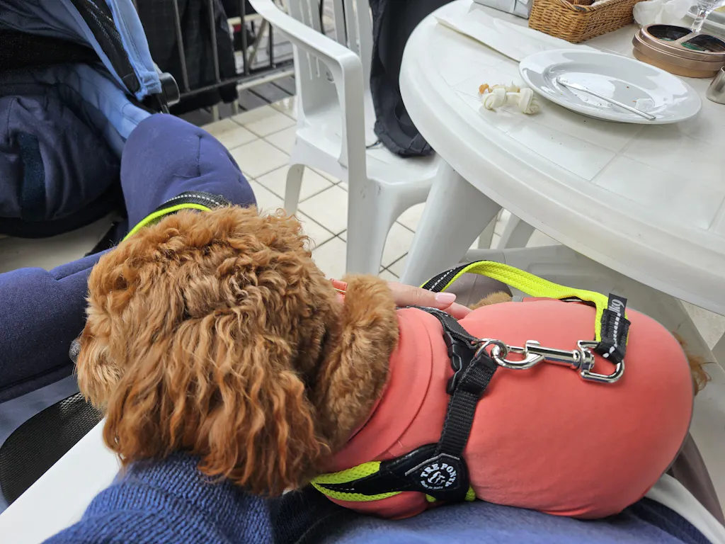 3.5キロ、胴長なトイプードル、Mサイズでピッタリでした。